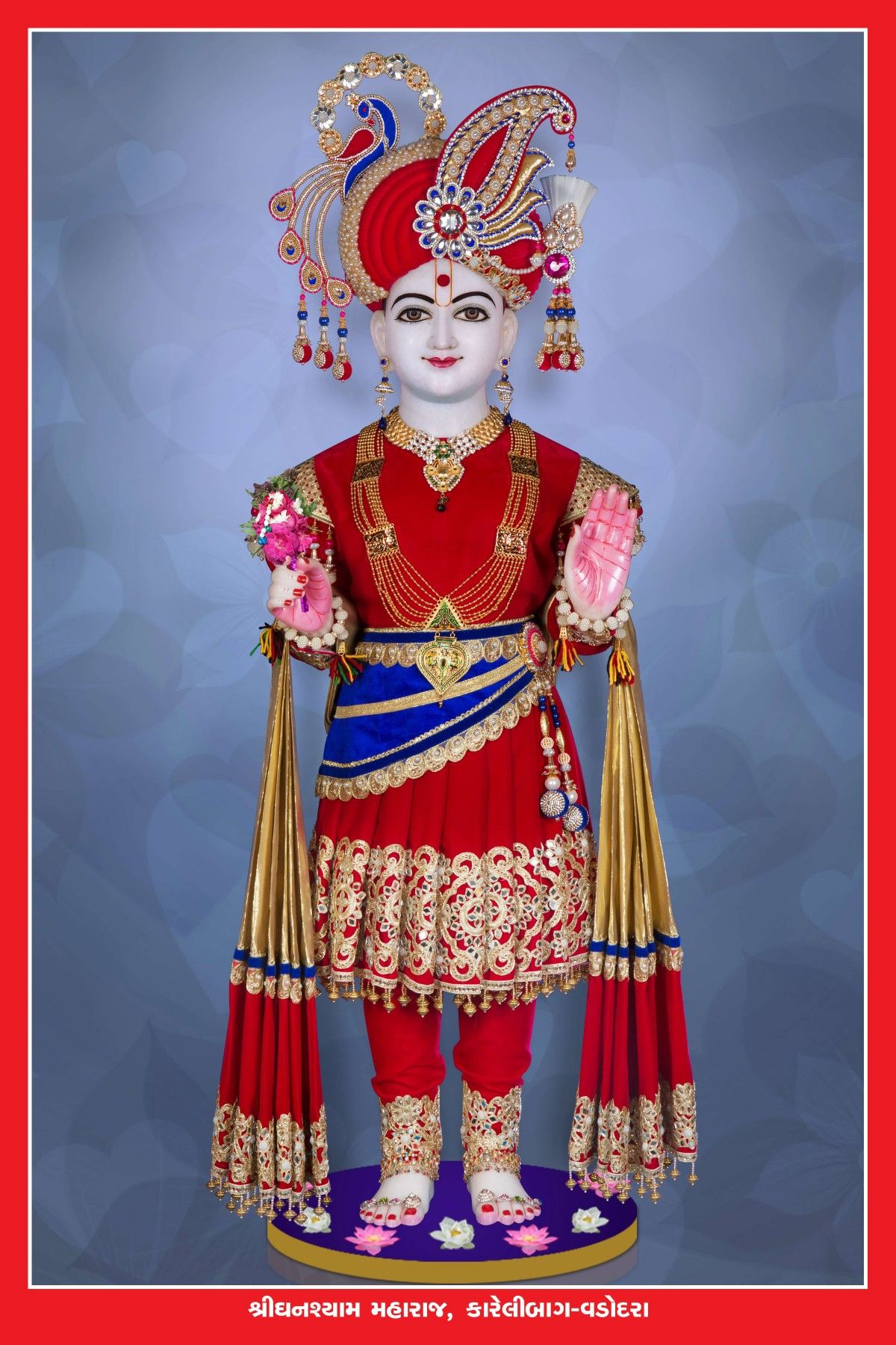 What a captivating *darshan*! This image showcases Shree Swaminarayan Maharaj, radiating peace and divine grace. The intricate details of his clothing and jewelry, the vibrant colors, and the serene expression all speak to the power and beauty of his presence. May his blessings be with you always. Let this image bring *shakti* and *bhakti* into your daily life, offering a moment of connection to the divine. 🙏✨🕉️