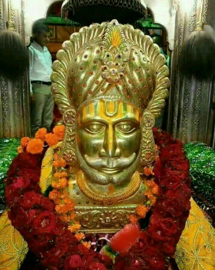 A sense of profound peace emanates from this breathtaking depiction of Ramdevpir. The golden face, adorned with an elaborate crown and vibrant marigold garlands, invites you into a realm of deep bhakti. The intricately crafted features reveal the strength and serenity of this revered saint. May this image bring blessings into your life and fill your day with divine darshan. 🙏✨🏵️