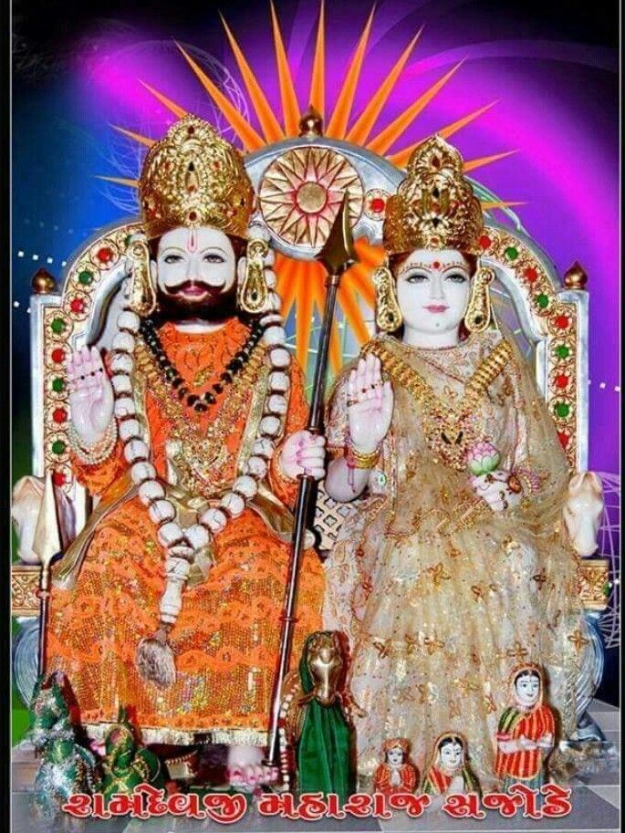 What a majestic sight! Ramdevpir Maharaj graces this image with His regal presence, radiating an aura of peace and protection. The intricate detailing of the statues, from the shimmering jewelry to the ornate turbans, truly captures the divine essence. Feel the blessings flow into your life as you make this a part of your daily darshan. 🕉️✨ May Ramdevpir guide you on your path, showering you with His grace. 🙏