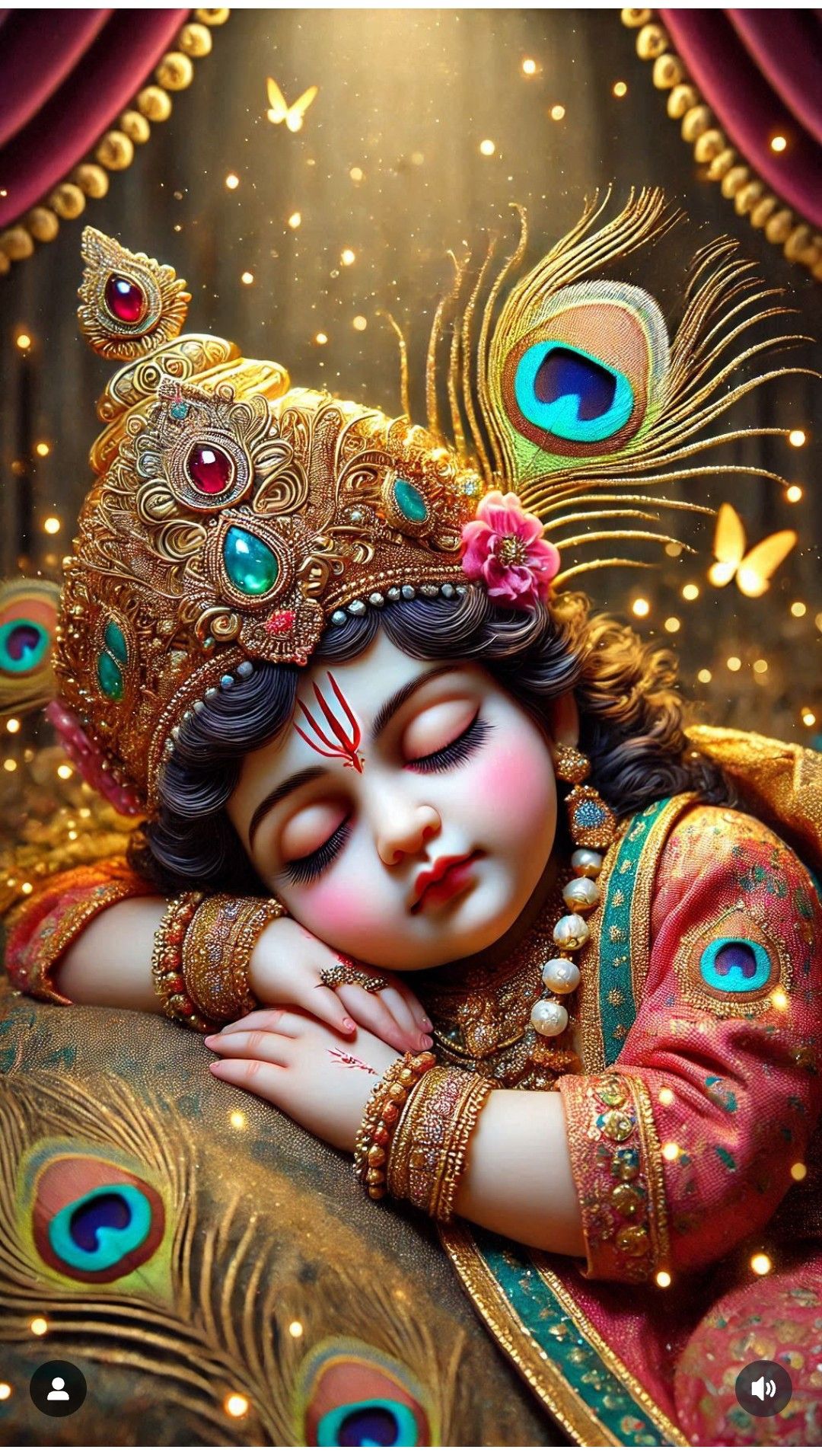A sense of profound peace emanates from this image of little Kanhaiya, lost in sweet slumber. The gentle curve of his closed eyelids and the delicate blush on his cheeks evoke a feeling of pure devotion. Isn\'t it mesmerizing to witness such innocence and divine serenity? 🕉️✨May this *darshan* of Bal Krishna fill your day with joy and tranquility. Make your phone a portal to daily divine grace! 🌸🙏