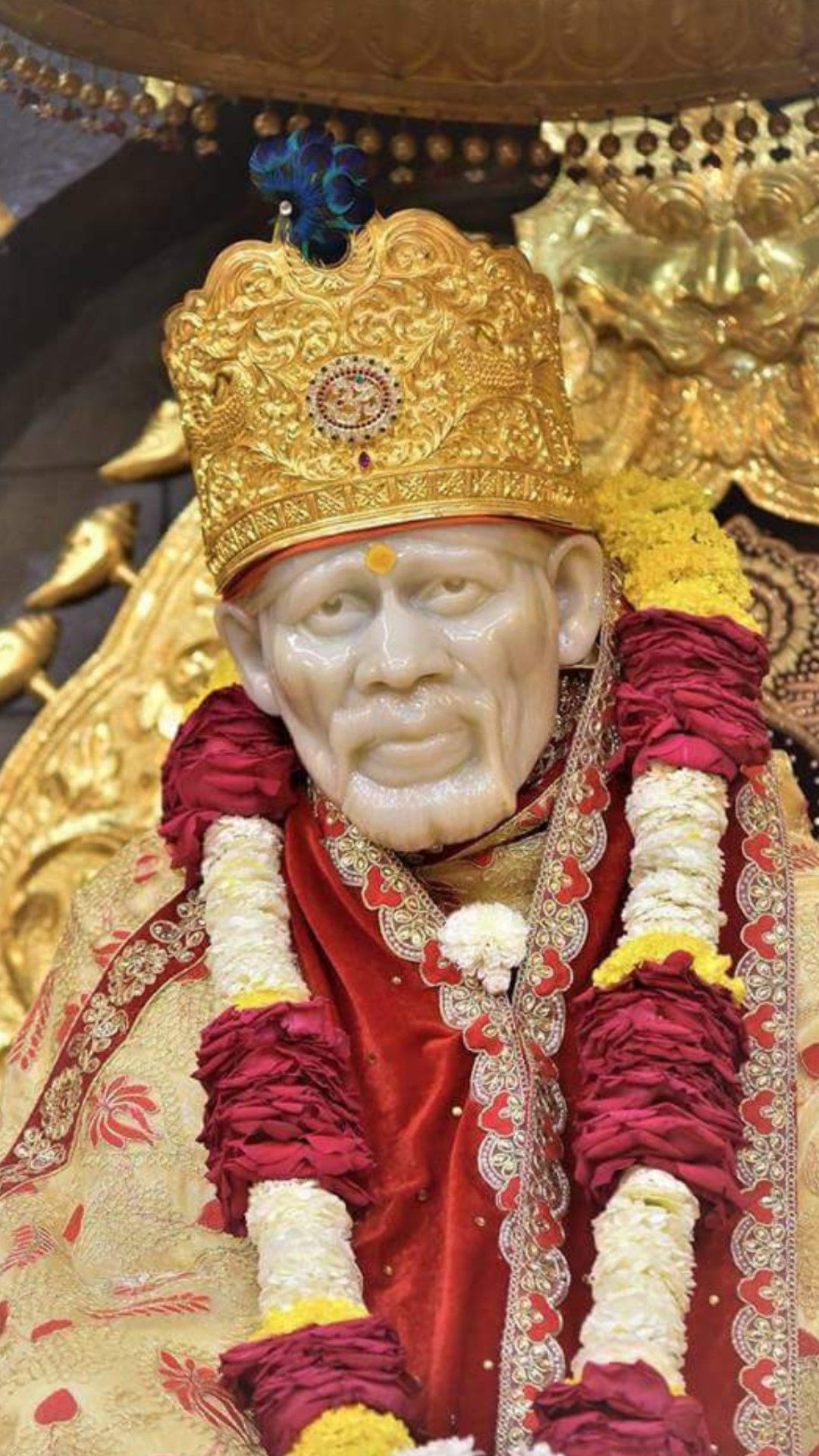 A sense of profound peace emanates from this captivating image of Sai Baba. His gentle gaze draws you in, offering a moment of solace and connection. See the intricate details of the golden crown and vibrant floral garlands, symbols of the love and reverence held for this beloved saint. The warmth of his presence is palpable, inviting you to experience the blessings of Shirdi’s radiant sage. Make your phone a source of daily *darshan* and feel the divine energy of Sai Baba with you always. 🕉️✨🙏