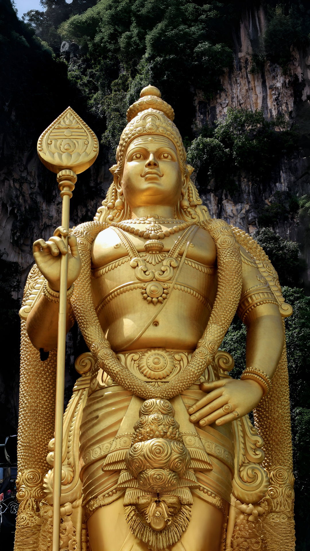 Behold the majestic presence of Lord Murugan, standing tall and radiant against the dramatic backdrop of Batu Caves! ✨ The golden hue of this magnificent statue evokes a feeling of immense *shakti* and divine strength. You can almost feel the power of his *vel*, the sacred spear, resonating with courage and protection. May this image bring you a moment of peace and a daily dose of *darshan* – a reminder of the divine warrior within. 🙏🏽 Make your phone a portal to devotion with this incredible image! 🕉️